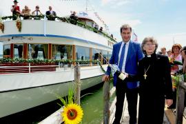 Inning/Stegen - Verstärkung für die weiß-blaue Flotte: Das MS UTTING ist das 34. Schiff der Bayerischen Seenschifffahrt GmbH. Das Vorgängerschiff mit gleichem Namen war im Februar spektakulär auf eine Eisenbahnbrücke in München transportiert worden. „Das moderne Fahrgastschiff mit klassischen Linien fügt sich nahtlos in das historische Flottenbild am Ammersee ein.