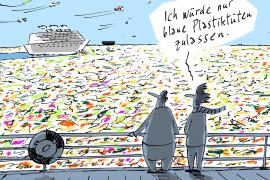 Starnberg - Überraschend andere Blicke auf die weltpolitischen Themen unserer Zeit wagt die Ausstellung „Glänzende Aussichten“ im Foyer des Landratsamtes Starnberg. In 99 humorvollen Karikaturen richtet sich der Fokus auf aktuelle Herausforderungen wie Lebensstil, Konsum, Klimawandel und Gerechtigkeit. Die Ausstellung wird am Dienstag, den 31.