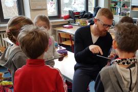 Landkreis - Mit Feuereifer schwärmten die Zweitklässler der Ährenfeldschule Gröbenzell ausgestattet mit Tablets durch ihr Schulhaus. Ihre Aufgabe im Fach Mathematik war es Gegenstände im Schulgebäude zu fotografieren, anschließend Symmetrieachsen einzuzeichnen und die Ergebnisse am Beamer zu präsentieren.
