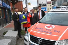 Gilching - Defibrillator, Absaugpumpe, Einsatzrucksack: Das ist die Standardausrüstung, mit der die Helfer vor Ort des BRK Gilching bei einem Einsatz zum Patienten eilen. Weil der Rucksack enorm strapaziert wird und entsprechend verschleißanfällig ist, hat die Raiffeisenbank Gilching den ehrenamtlichen Helfern 500 Euro für eine Neuanschaffung gespendet.