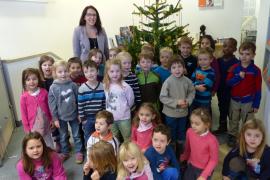Gilching - Auch in diesem Jahr durften die Vorschulkinder des St. Sebastian Kindergartens wieder den Christbaum in der VR-Bank Filiale in der Sonnenstraße schmücken.